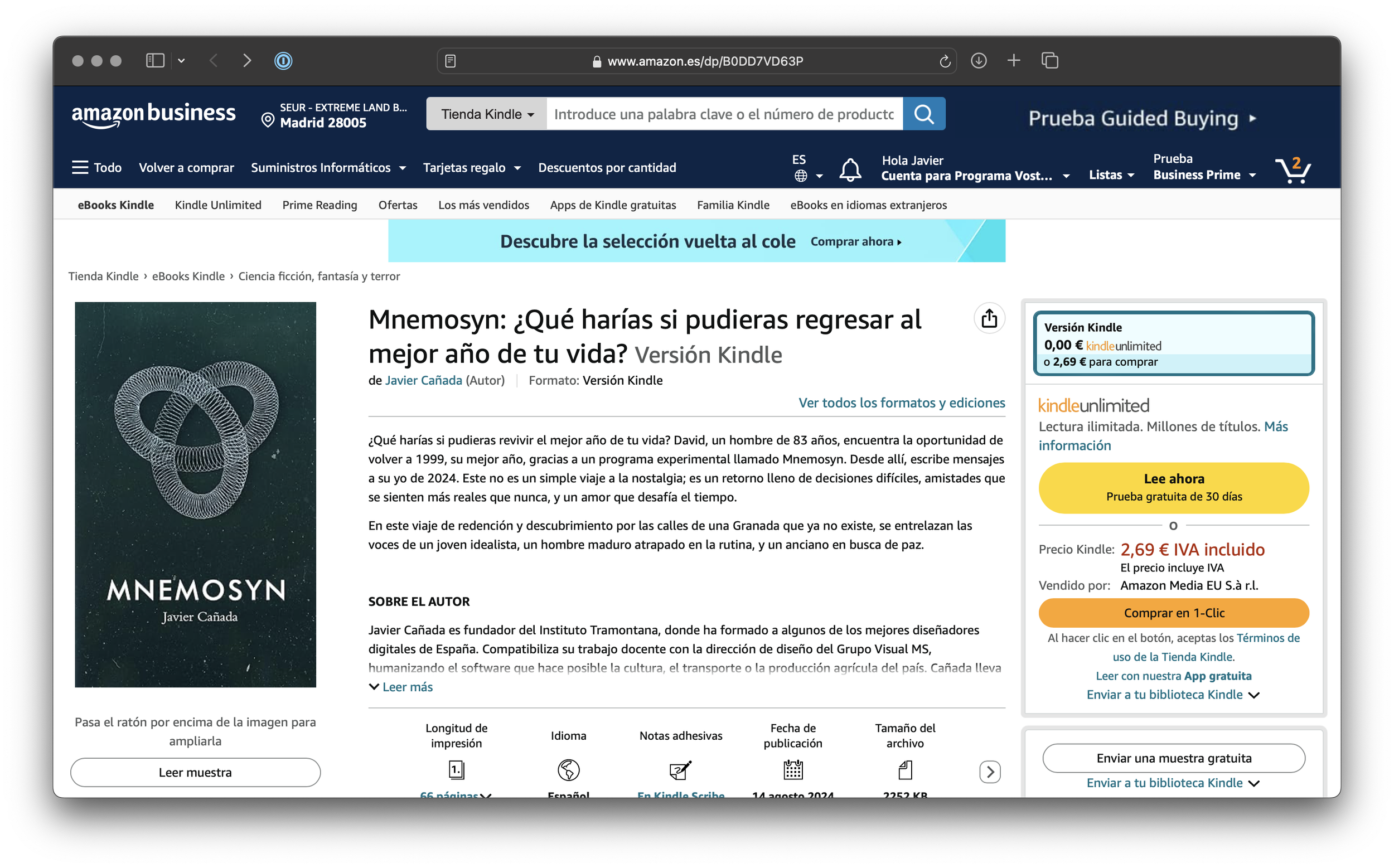 Mnemosyn se puede leer como ebook desde la tienda Kindle de Amazon. El precio es asequible: 2,69€ y la lectura también, son sesenta y algo páginas que se devoran en un par de sentadas veraniegas.